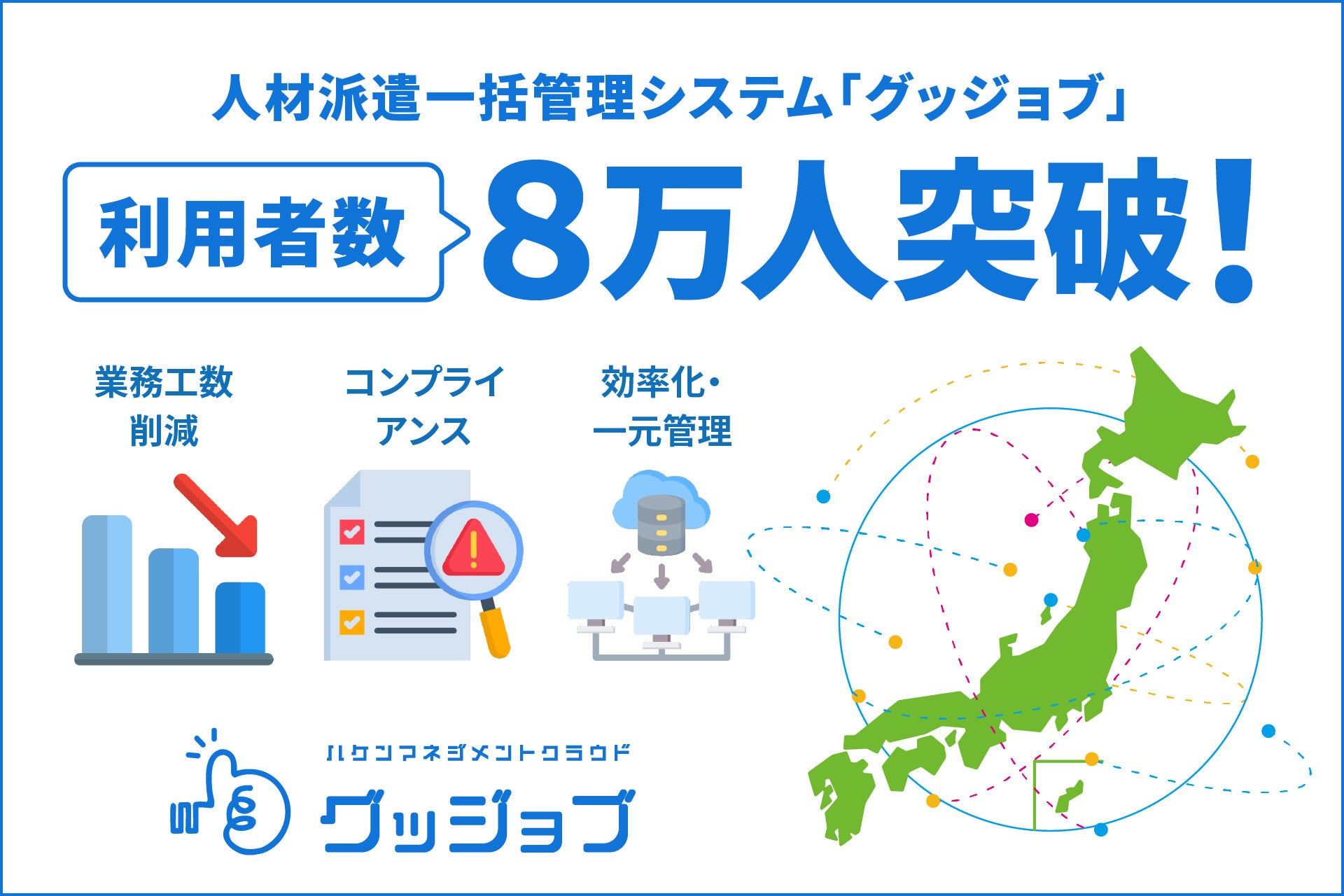 業務工数80%削減の企業も!人材派遣一括管理システム『グッジョブ』が導入企業数3,000社・4,600事業所、利用者数8万人を突破