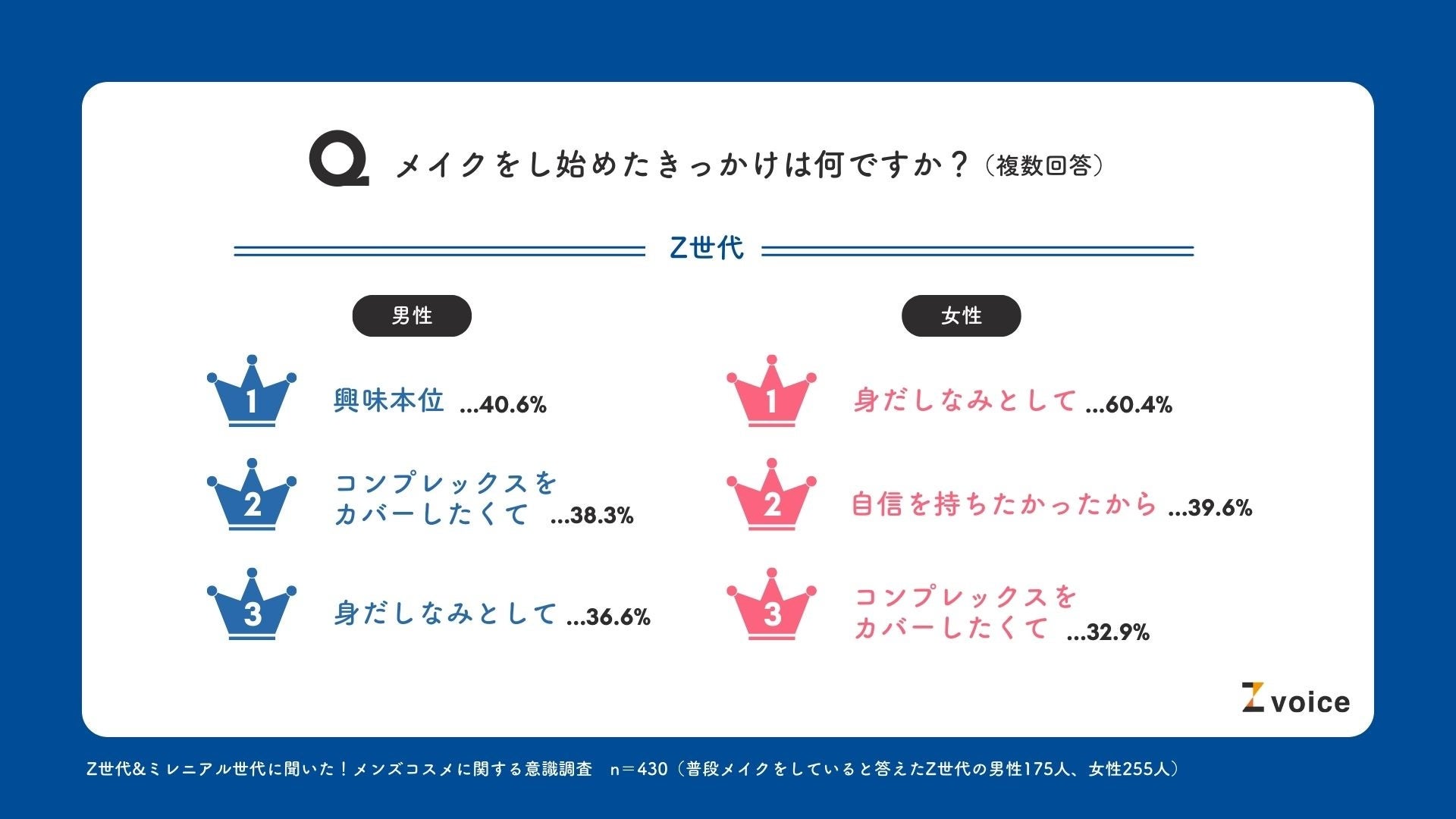 Z世代男性は「興味」や「コンプレックス」をきっかけとしてメイクを始める