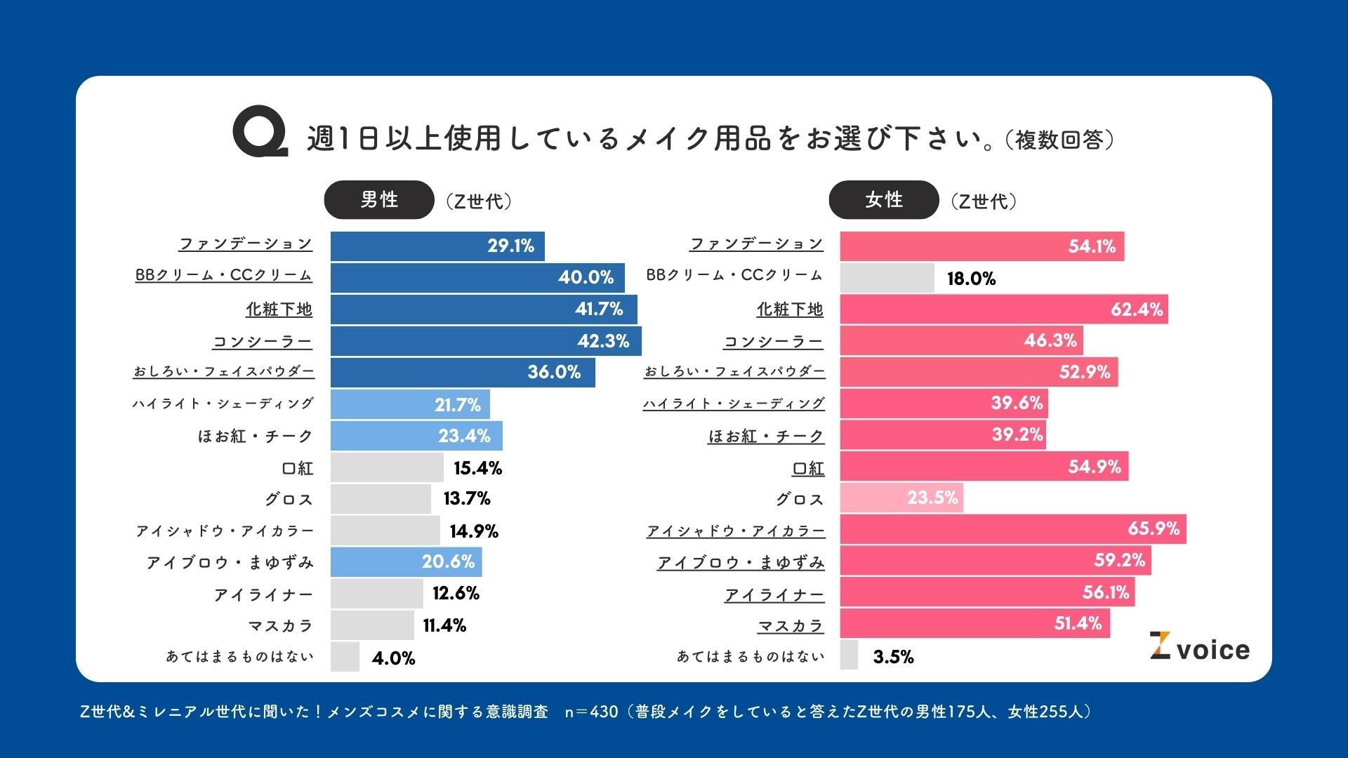 Z世代男性が日常的に使用するメイク用品は“ベースメイク”