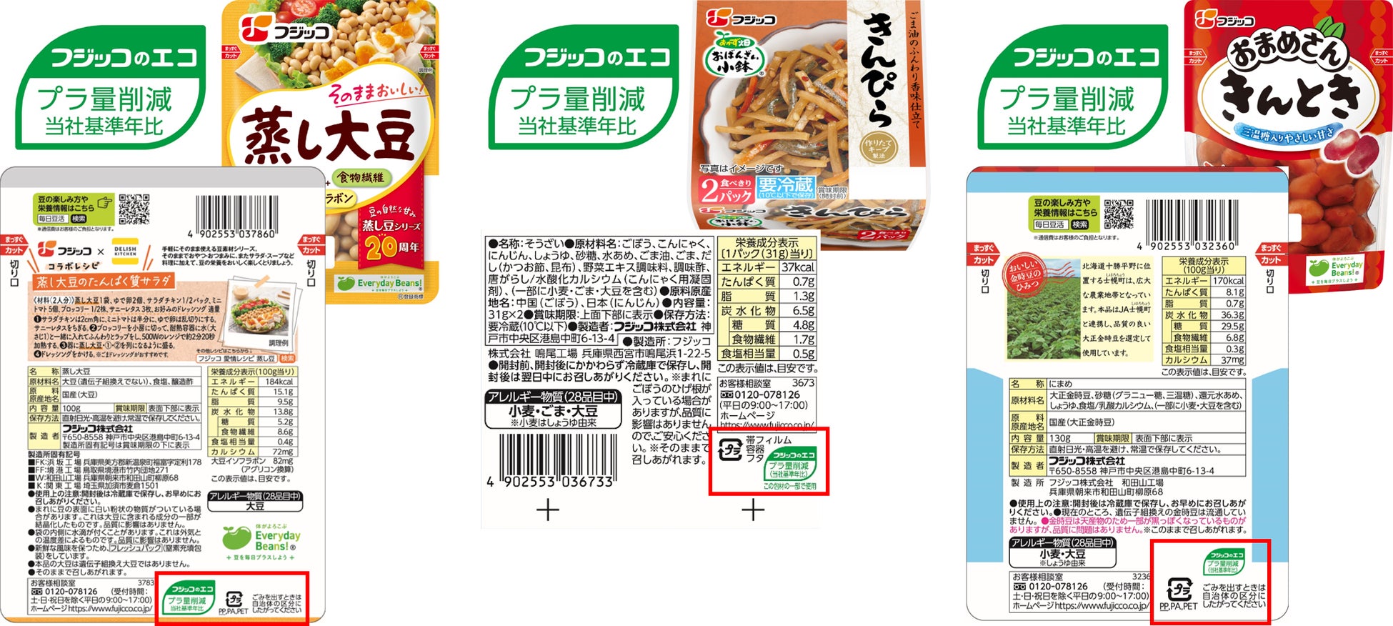 2024年9月より、パッケージの裏面に「フジッコのエコ」マークとして、環境配慮型パッケージの取り組みが追加されます。
