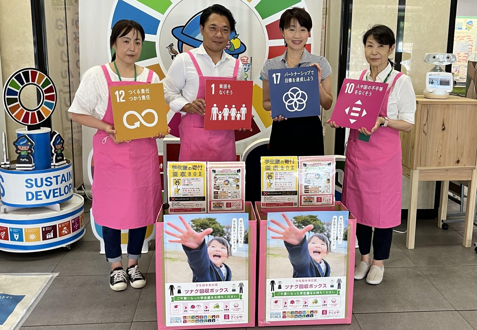 相模原市では、廃棄衣類の削減、障がいのある方の活躍の推進、経済的な困難を抱える家庭の学生服購入の負担軽減等を目的に、不要になった学生服の寄附を受け付ける「ツナグ回収ボックス」を設置しています。