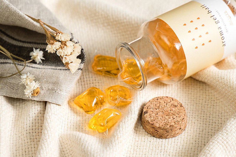 キャンディーのようなかわいい見た目でお好きな香りをプラス。※着色料による色移りの心配はございません。