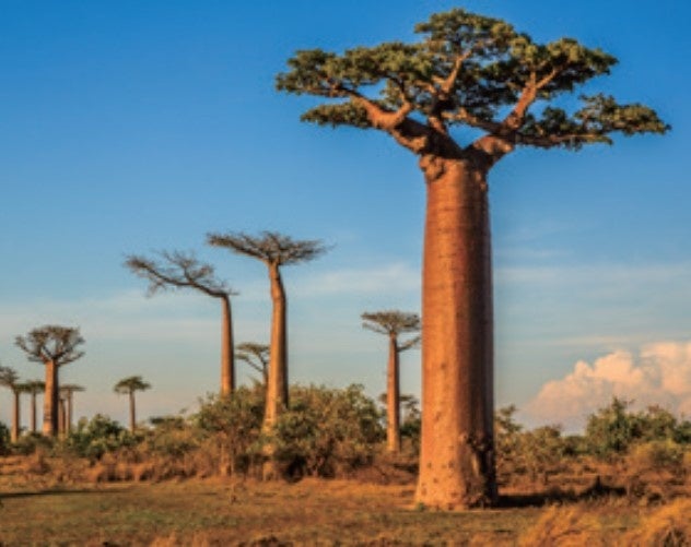 乾燥地帯で育ち、高い保水力と抗酸化力をもつバオバブ。栄養豊富な実は食用として用いられるなど、2,000年以上も前から人々や動物たちの生活を支えています。バオバブから採