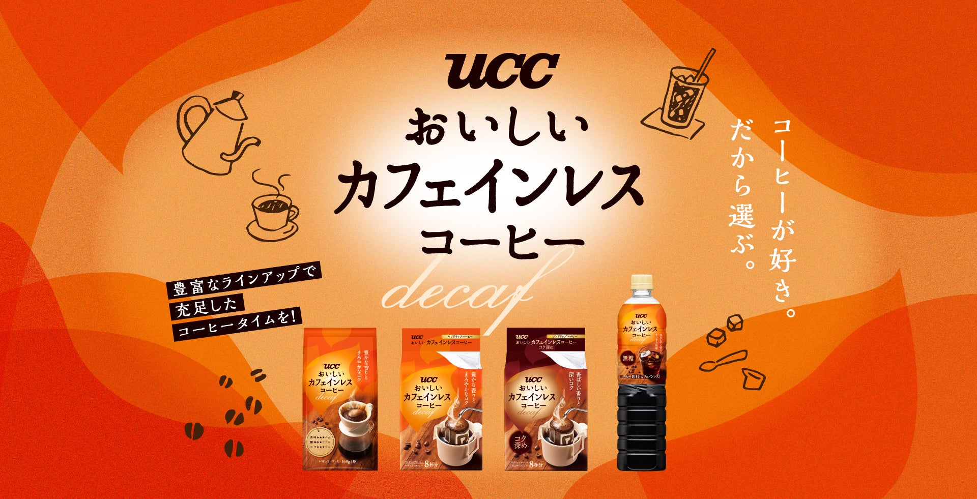 ※1 『UCC おいしいカフェインレスコーヒー インスタントコーヒー』は除きます。(随時リニューアル予定)