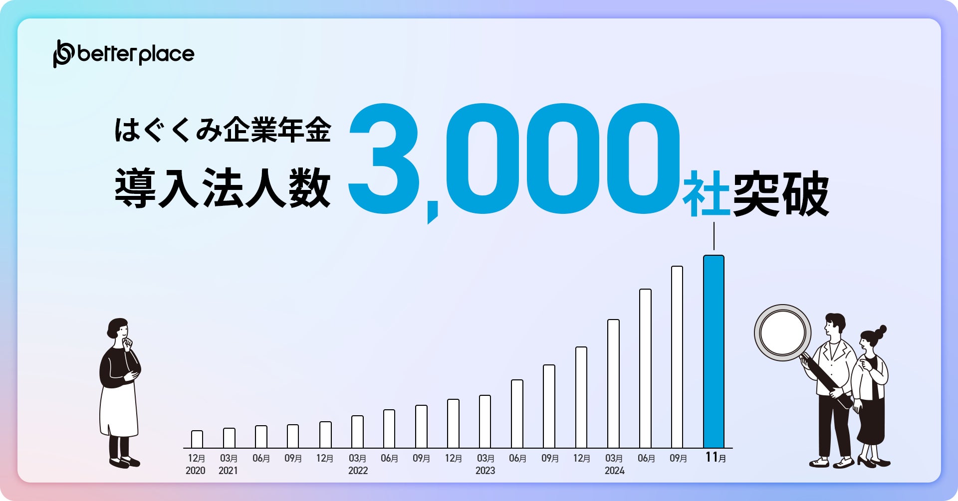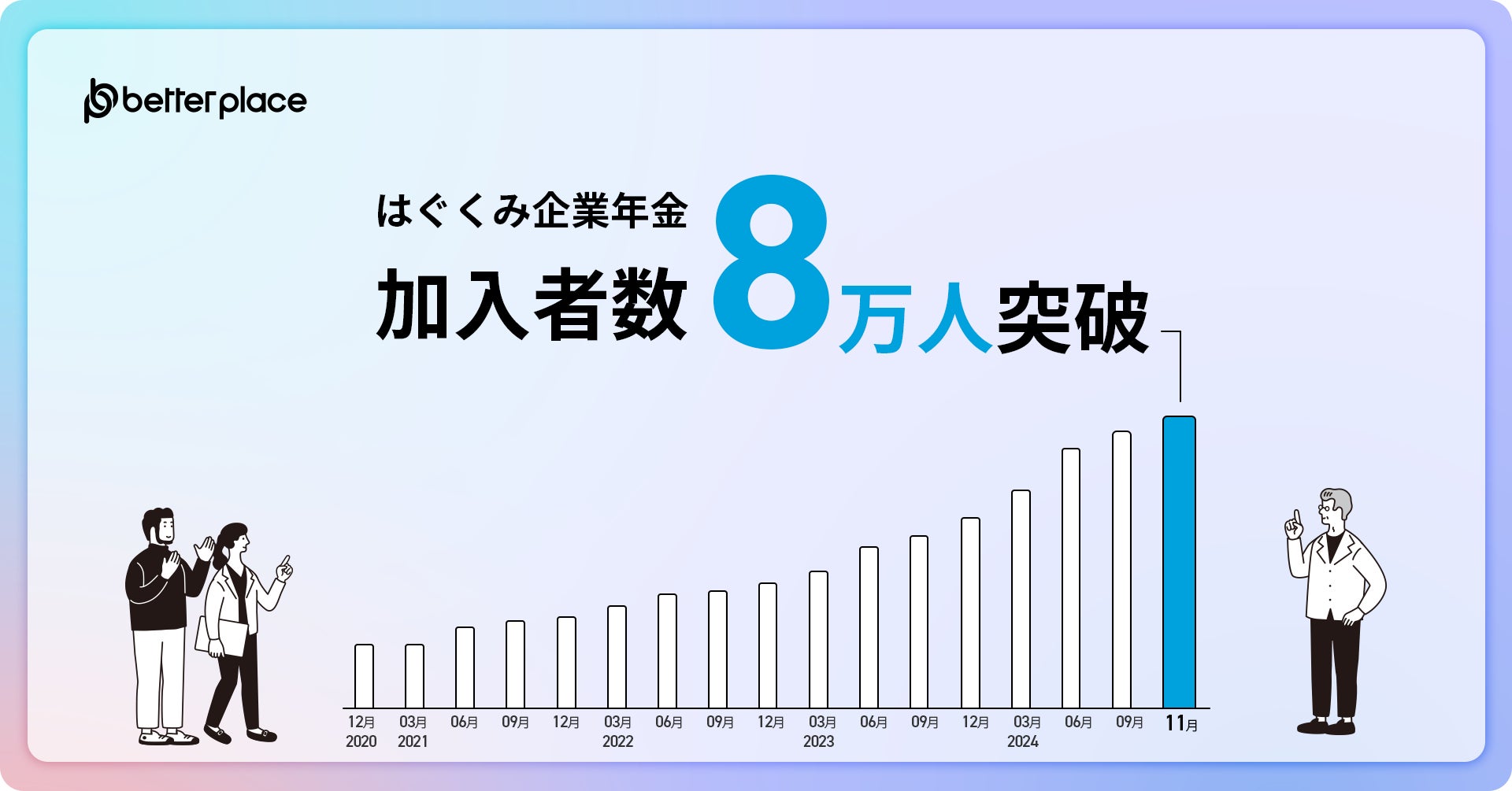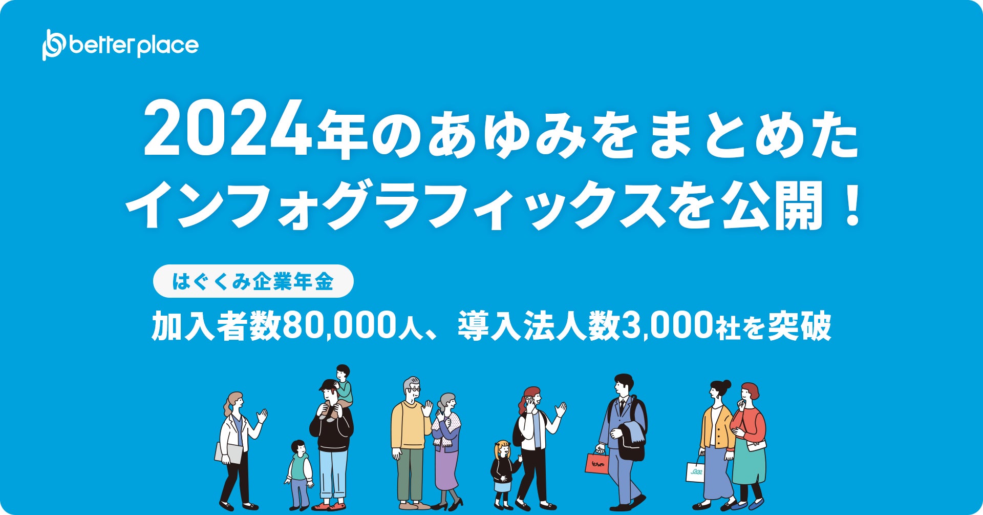 ベター・プレイスは本年、導入支援を行う「はぐくみ企業年金」の加入者数が8万人を突破し、導入法人数は3,000社を超えるなど、飛躍的な成長を遂げました。これを記念し、より多くの皆さまに当社の歩みを分かりやすくお届けするべく、2024年の成長をまとめたインフォグラフィックスを公開しました。