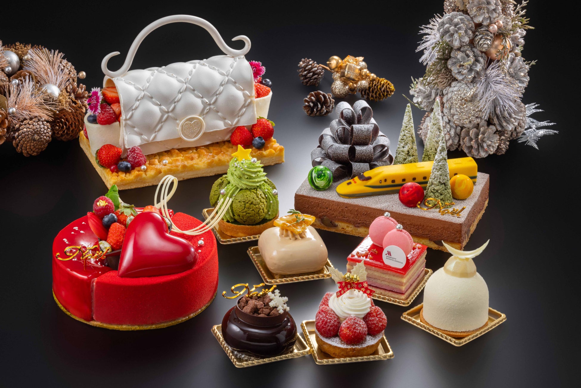 名古屋マリオットアソシアホテルの今年のクリスマスケーキのコンセプトは”大切な方への贈り物”。真っ赤なリースをイメージした苺たっぷりのケーキやドクターイエロー(T4)など、初登場のケーキがラインナップ。