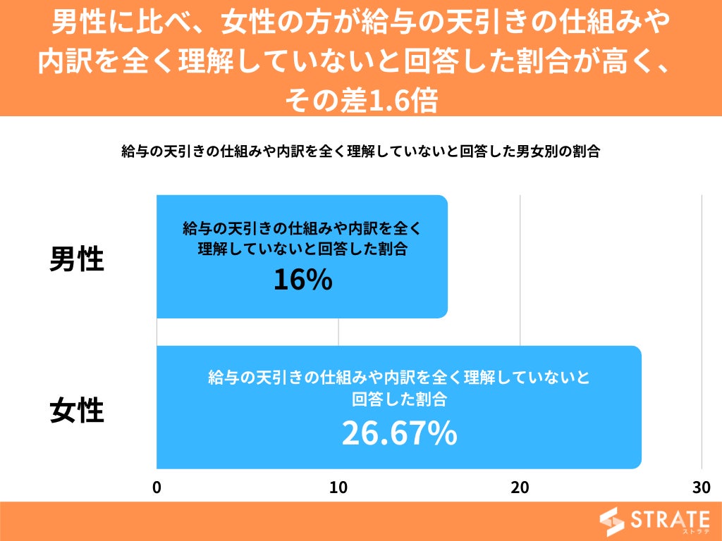 【男性に比べ、女性の方が給与の天引きの仕組みや内訳を全く理解していないと回答した割合が高く、その差1.6倍】