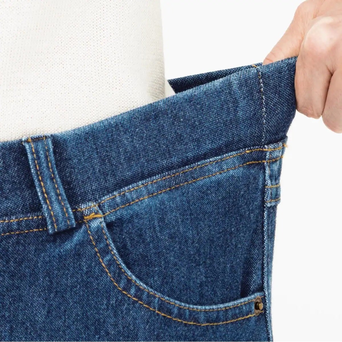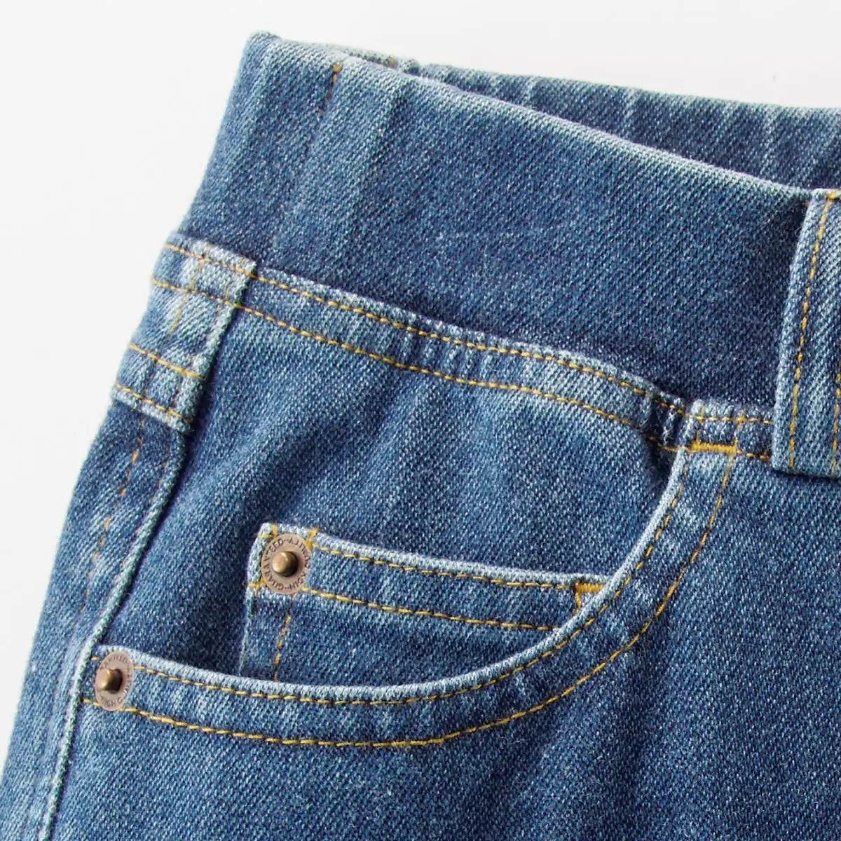ステッチや金属リベット、コインポケットまで再現したデニム見え仕様