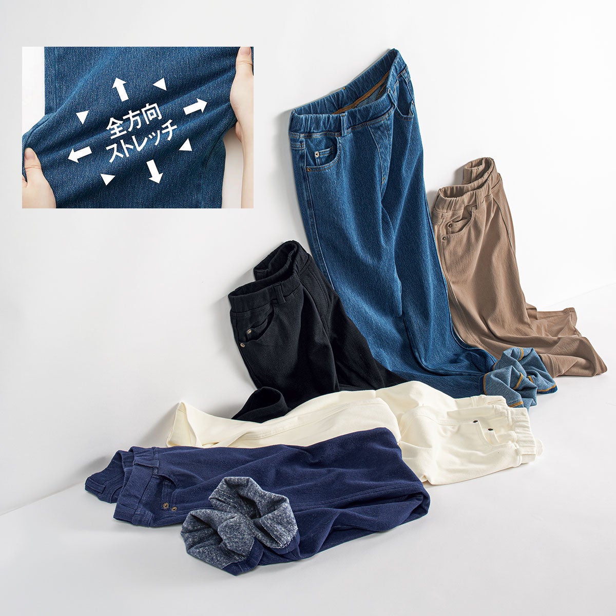 セシールの大人気ロングヒット商品!見た目は本格デニムのやわらかニットパンツ『裏起毛ニットデニムストレートパンツ』がシリーズ累計184万本突破!(2022年10月時点)