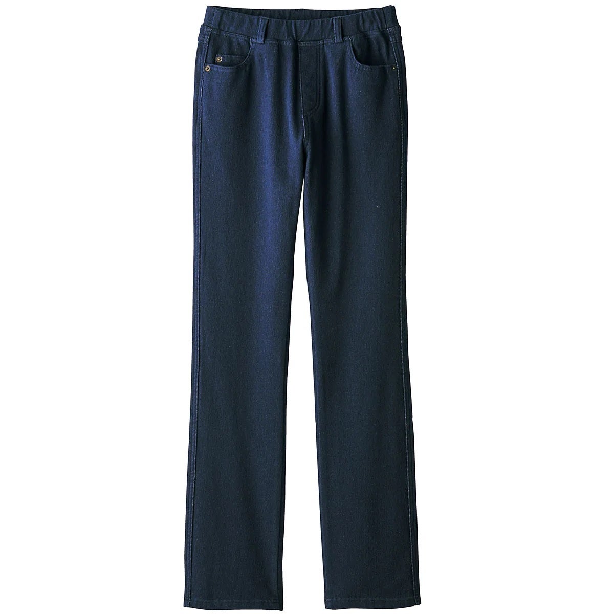 【裏起毛ニットデニムストレートパンツ】