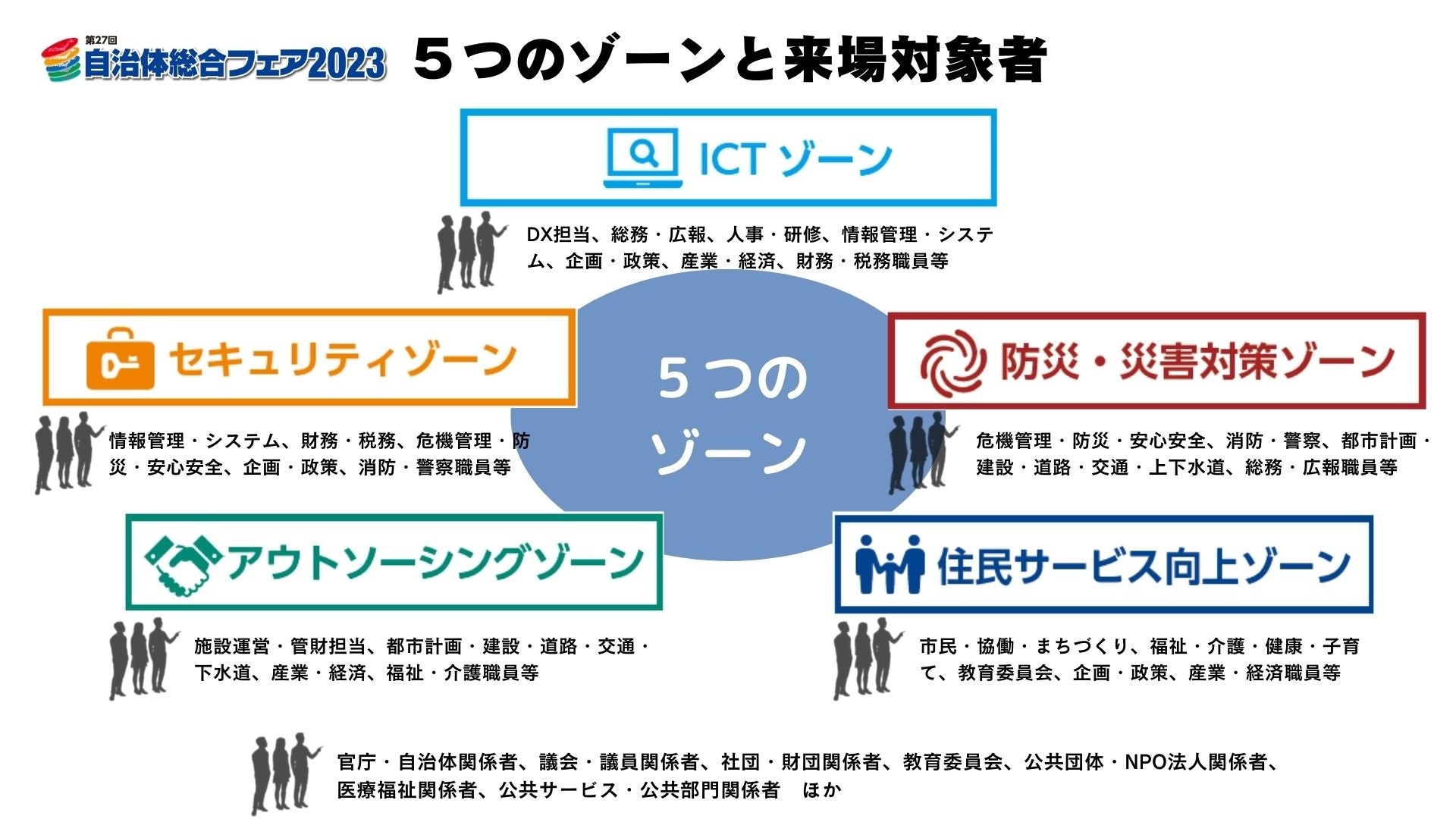 今期は【つながり、育む、持続可能な社会へ ~世界と日本の新たな局面のなかで、自治体の課題を考える~】をテーマに、5つのゾーンとさらに課題に特化した4つのコーナーで、全国から幅広い部署の自治体職員にご来場いただきます。
