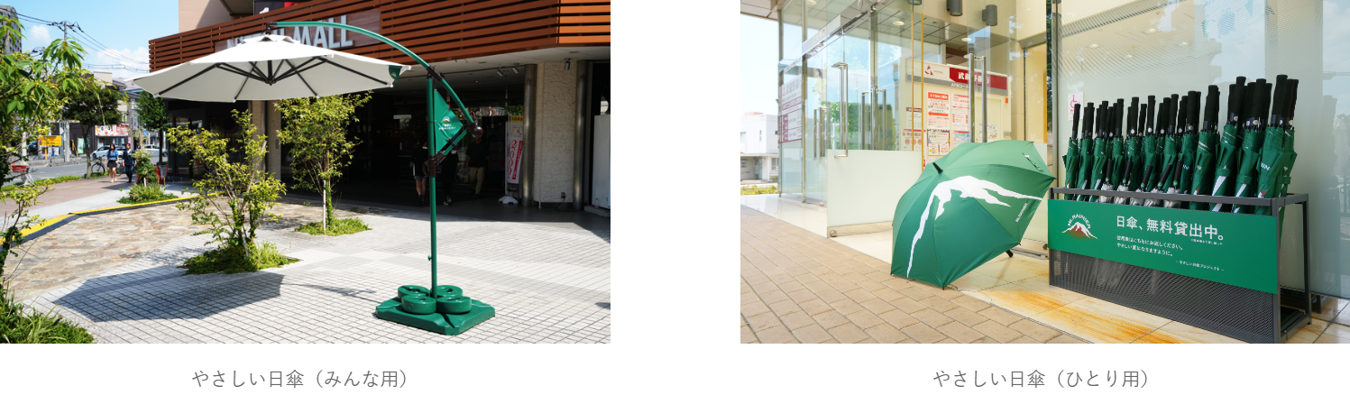 また、自由にご利用いただけるレンタル日傘“やさしい日傘(ひとり用)”計100本の設置も行われます。