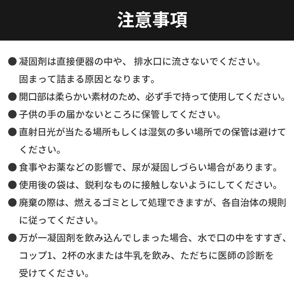 防災用品としてはもちろん、大渋滞、アウトドア、介護現場など、様々なシーンで活躍できる携帯トイレです。男女ともに使いやすい形状と、溶ける袋の凝固剤でしっかり固めてくれるので、安心してお使いいただけます。
