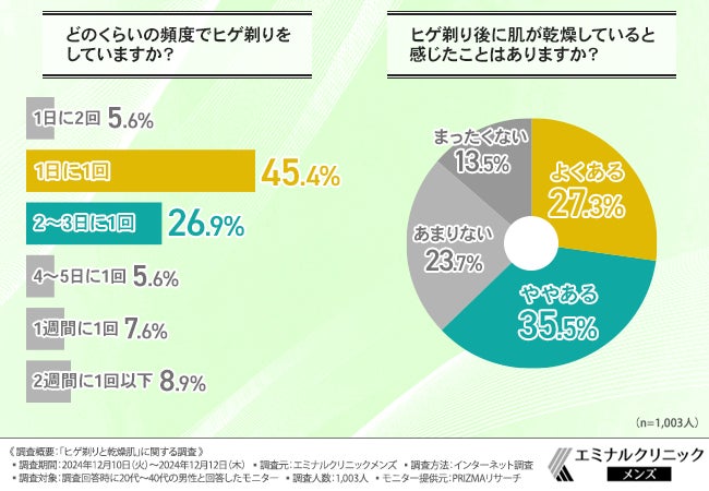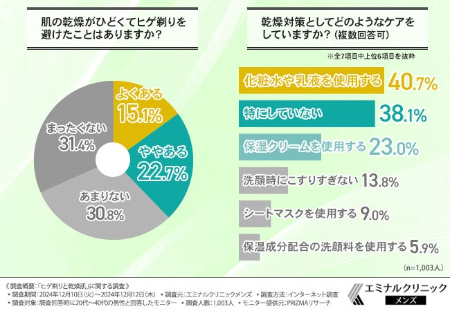 そこで今回、メンズ専用脱毛クリニック・エミナルクリニックメンズは、20代〜30代の男性を対象に、「ヒゲ剃りと乾燥肌」に関する調査を実施しました。
