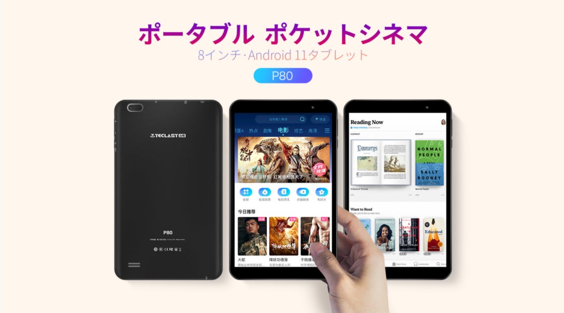 「P80」は広視野角IPSディスプレイを使用しており、1280x 800 FHD解像度を提供できま。16:10の最適な画面比率により、ビデオ視聴体験を大幅に向上させます。6mm狭いベゼルと8インチの精巧なサイズにより、片手でも操作できます。素晴らしい映画館をどこでも持っていきます。