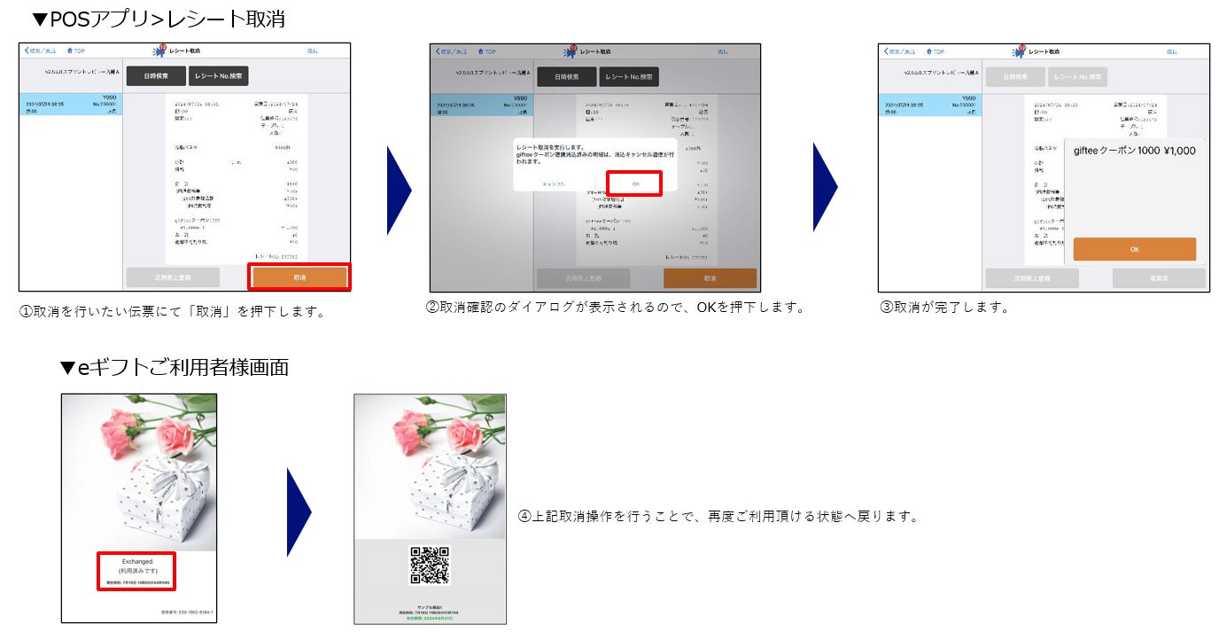またPOSで以下選択をすることでeギフトの利用取消が可能となります。