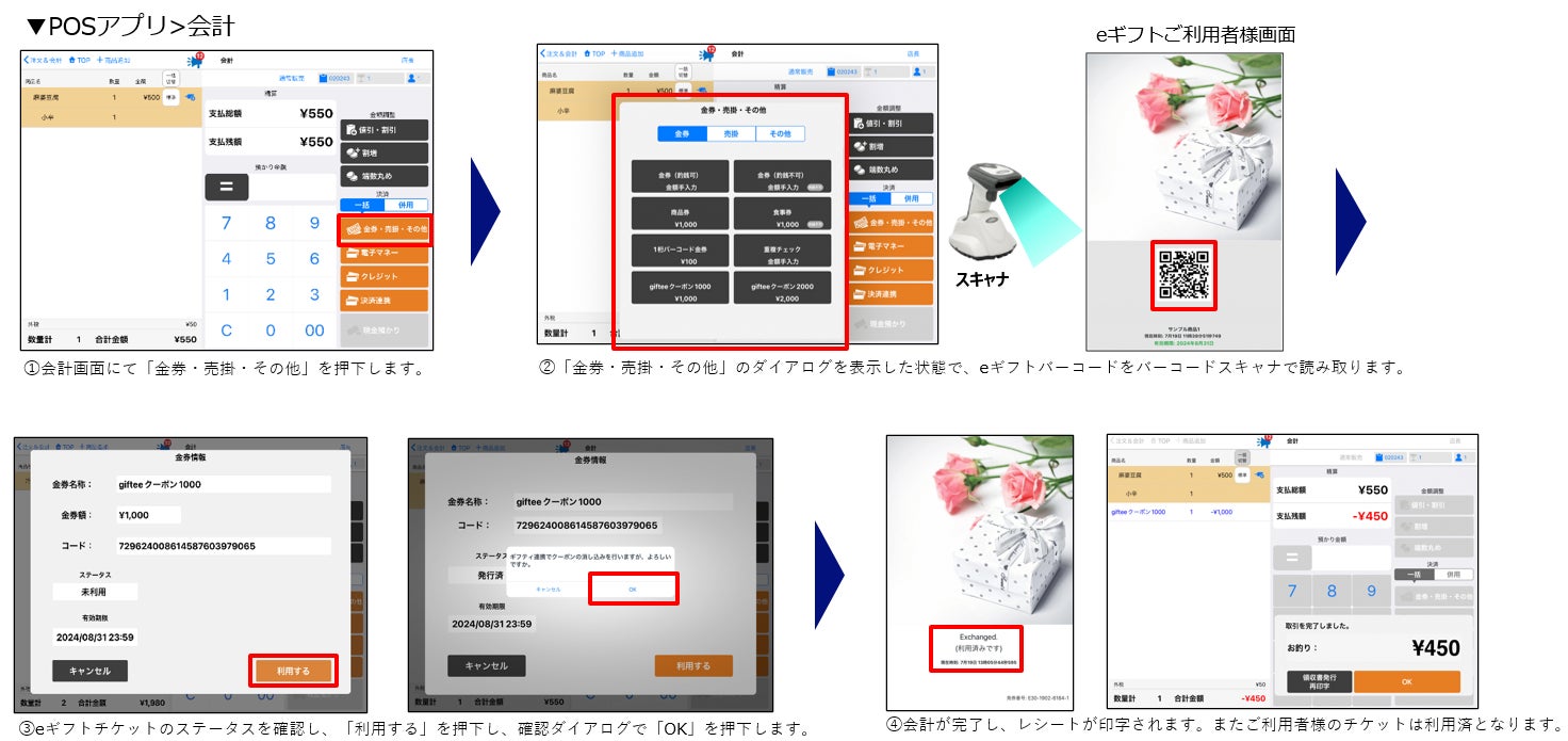 POSで以下選択をすることでeギフトの利用が可能となります。