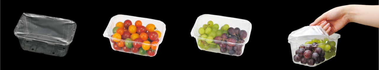 青果物を詰めた後、機械に流すだけでフィルムによって蓋がされるというシンプルなライン向けですが、専用フィルムにお客様の入れたい情報を印刷できるため、この容器一つで様々な青果物を詰められ、資材の集約にもつながるという幅広い用途への可能性が見えてきています。この度、更にサイズを増やし、細かな内容量の調整に対応できるよう、高さを低く設計し小量目に対応する浅型を発売いたしました。