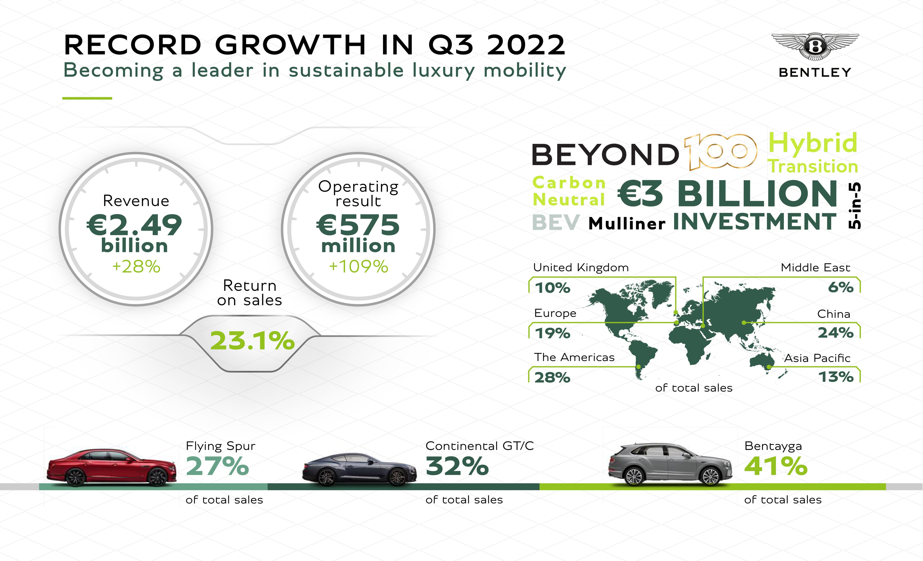 (2022年11月2日、クルー) ベントレーモーターズは本日、2022年第3四半期累計決算(1~9月期)を発表し、世界経済の不安材料や先行き不透明感が払拭されない状況にもかかわらず、過去最高の営業利益を記録したと発表しました。