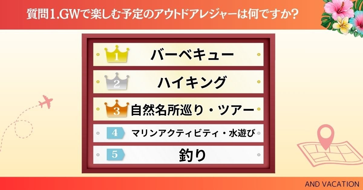 そこで、GWに楽しむ予定のアウトドアレジャーについてアンケートで聞き取り調査をしました。ぜひチェックしてみてください。