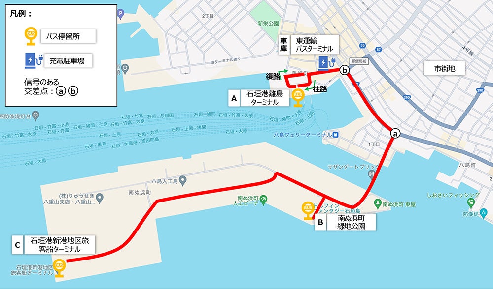 沖縄県石垣市(ユーグレナ石垣港離島ターミナル~南ぬ浜町緑地公園~石垣港新港地区旅客船ターミナル間を走行、図1)