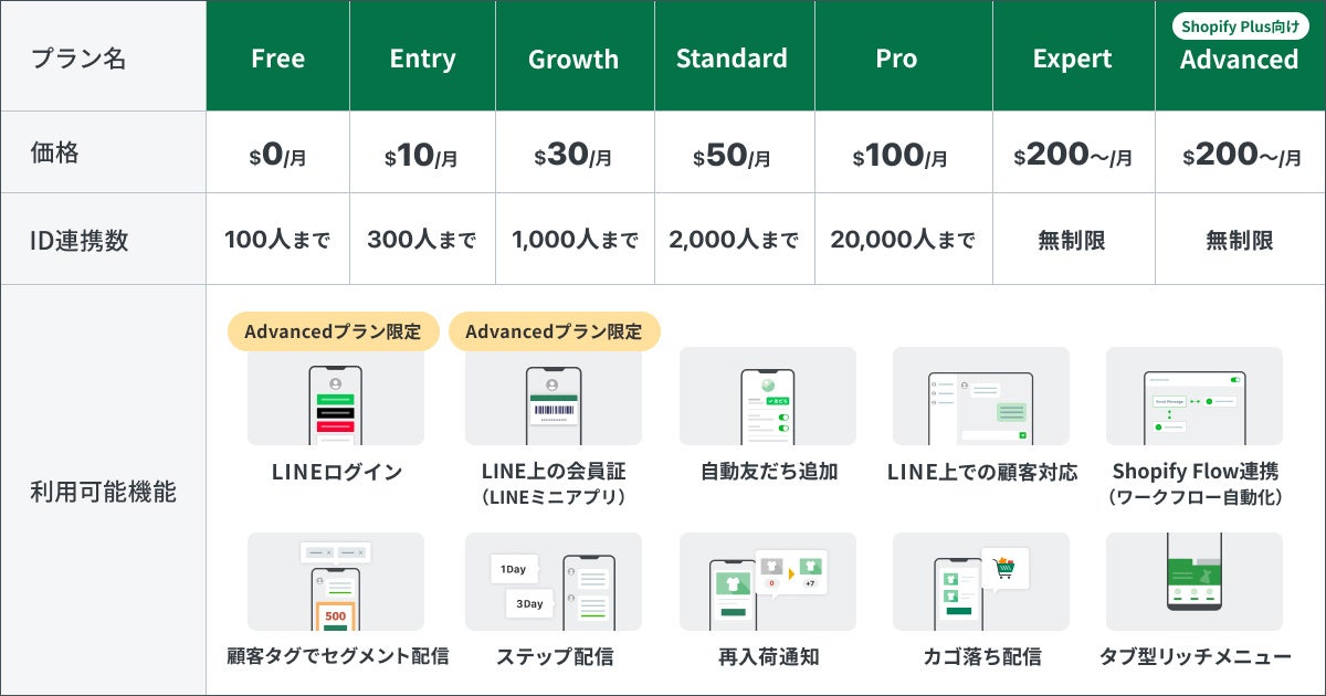 Shopifyで構築したECサイトに導入いただけるShopifyアプリです。LINE公式アカウントだけでは実現しづらい、ECサイト上の顧客・購買データと連携した配信を可能にします。
