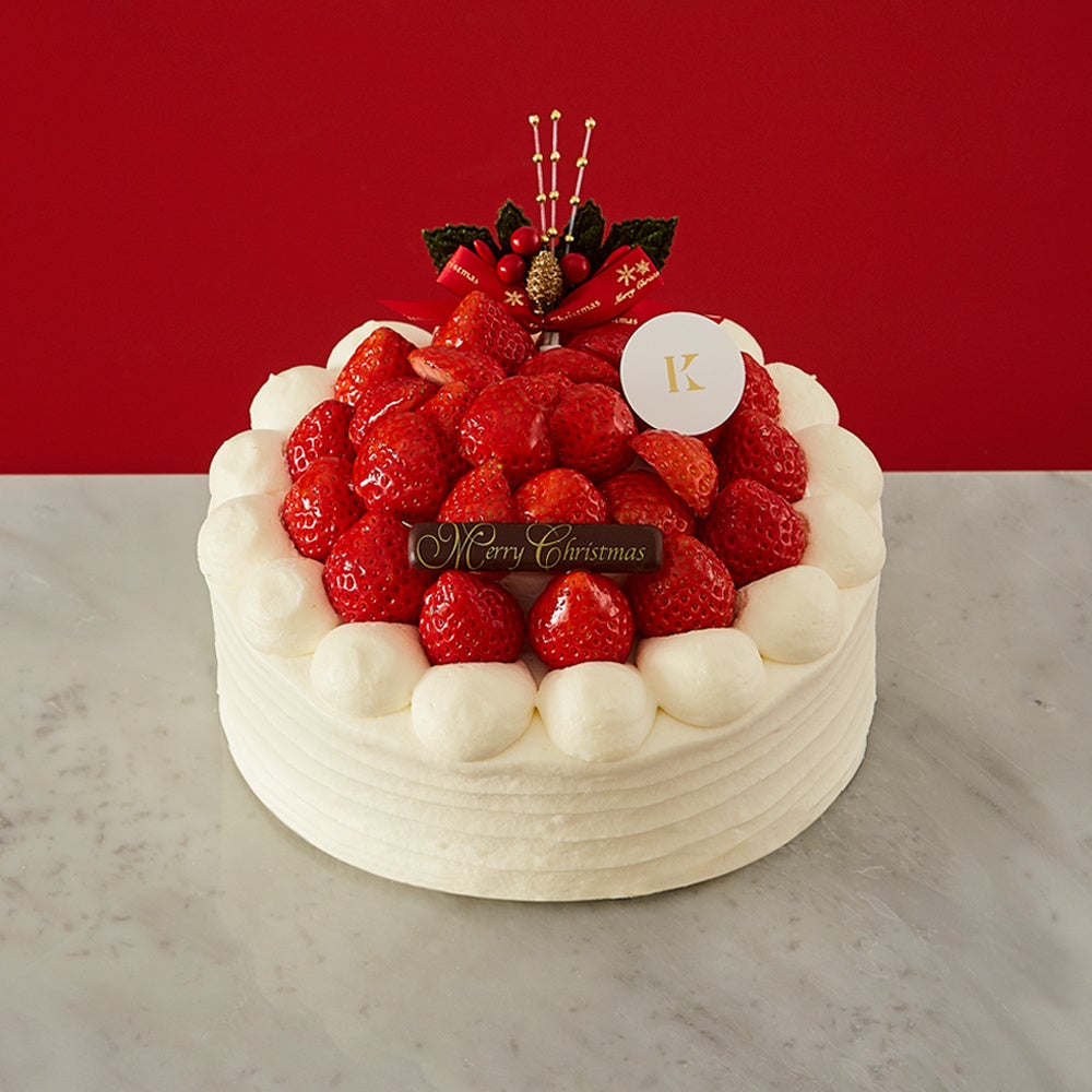 雪のように真っ白な生クリームの上をみずみずしいイチゴで覆い尽くした贅沢なおいしさです。