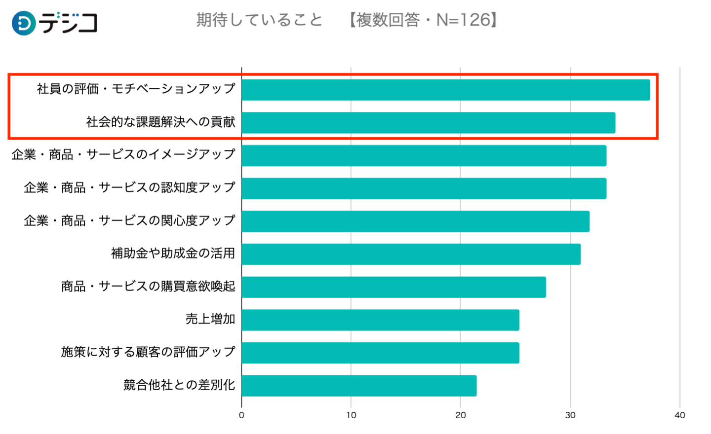 一方で「売上増加」(25.4%)や「競合他社との差別化」(21.4%)といった直接的に利益につながるような点を期待している企業は少ないことがわかりました。