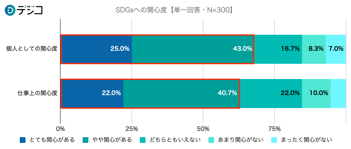 今回の調査を通じて、SDGsについて「個人として関心がある」が68%、「仕事上で関心がある」が62.7%と、比較的関心が高いことが見えてきました。