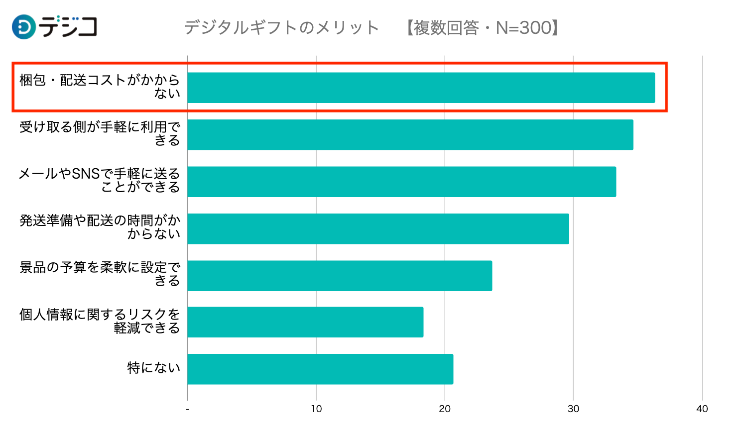 1/3以上がデジタルギフトの「梱包・配送コストがかからない」点をメリットと回答