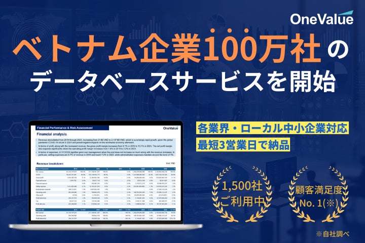 ONE-VALUE株式会社(本社:東京都江東区、代表取締役:フィ ホア)は、2025年3月よりベトナム企業約100万社の企業情報を収録したデータベースサービスの提供を開始いたしました。ベトナム進出を検討する日本企業や既に事業展開している日本企業向けに、デジタルを活用した効率的な企業調査・市場分析を提供します。