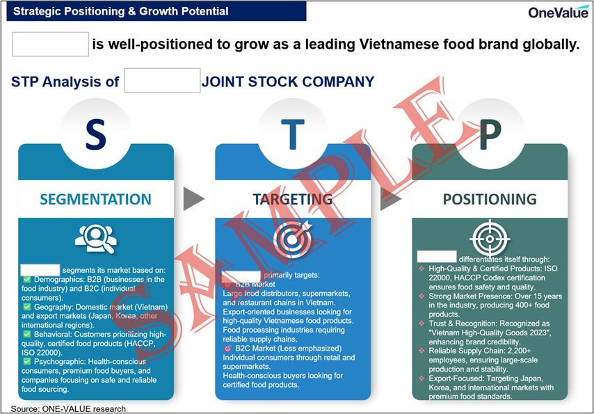アドバンスの内容に加え、主要顧客・ビジネス評価・法的リスクといった、分析を要する高度な情報が全て含まれる最上級プランとなります。単純な市場調査・企業分析に留まらず、ベトナムに特化したコンサルティング会社のインサイトも含まれるため、より直接的に戦略立案・事業展開に役立ちます。
