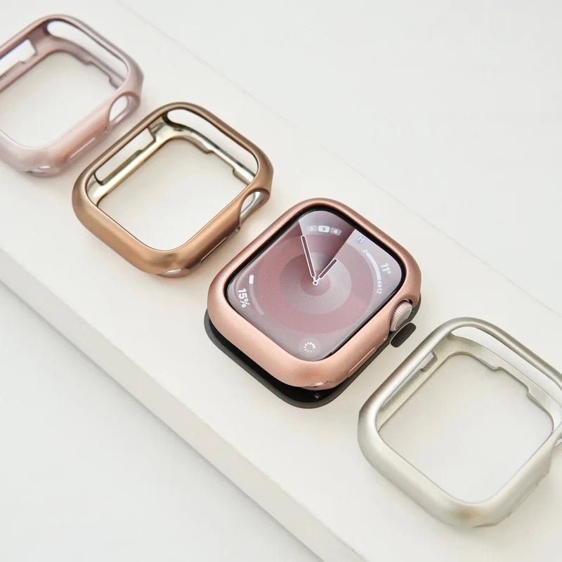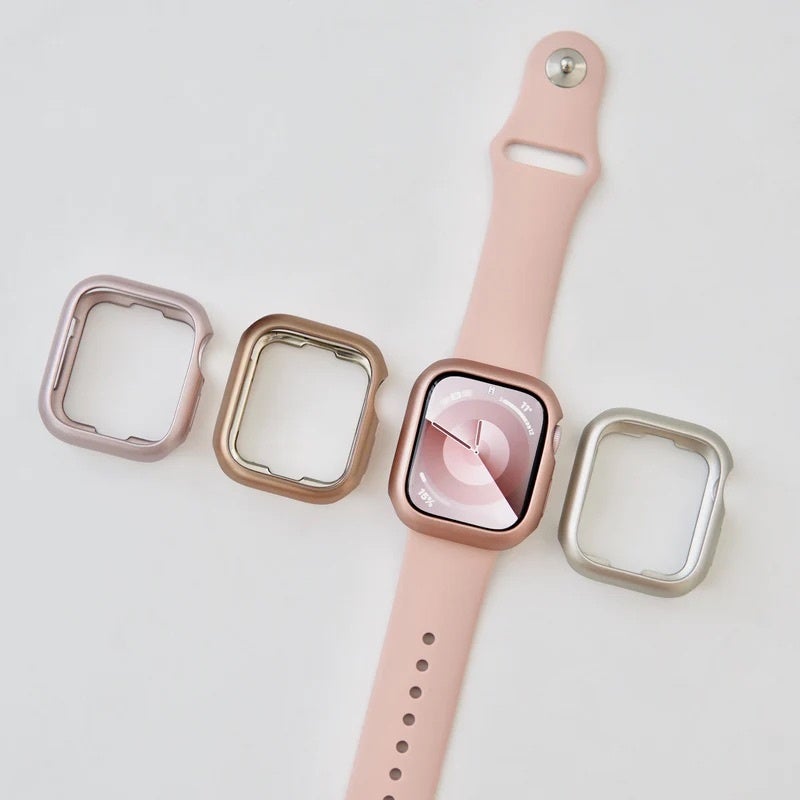 シンプルなアップルウォッチフレームです。しっかり包み込むような形状でフチをしっかり保護します。豊富なカラーバリエーションで、お気に入りのバンドとの組み合わせを考えるのも楽しみのひとつです。