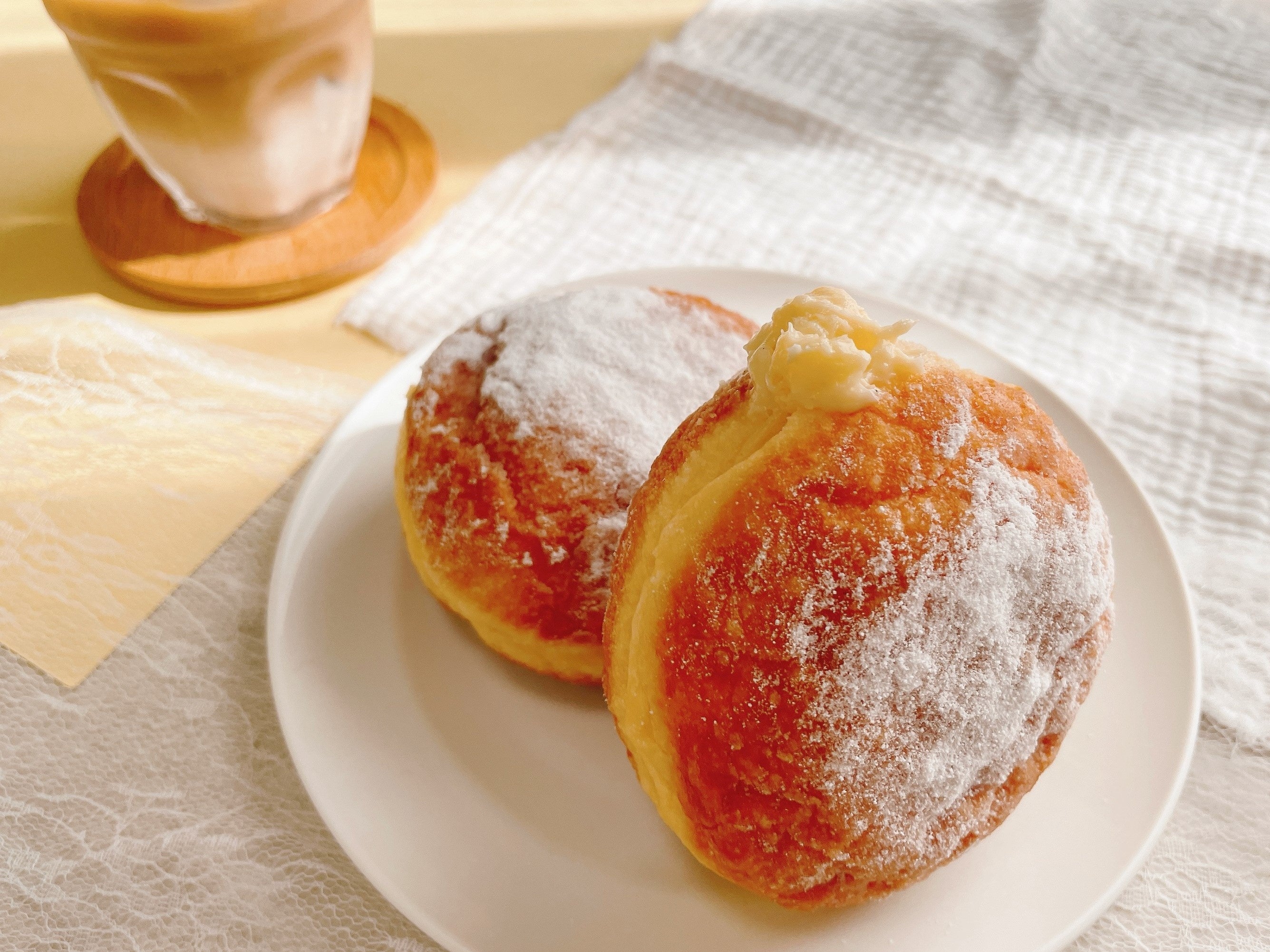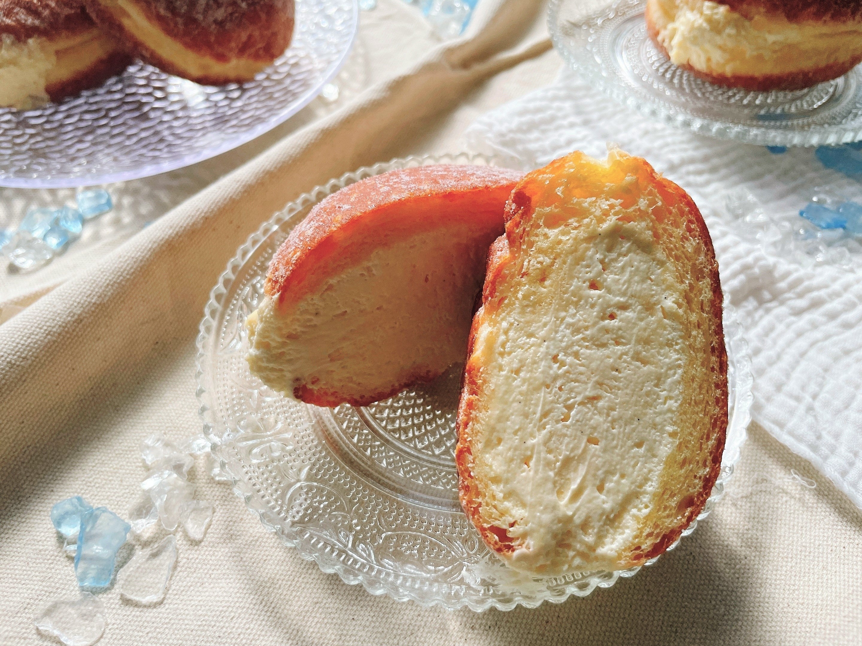 生の生地のようにやわらかなくちどけのふわっふわ生地に、とろっとなめらかなカスタードホイップをたっぷりと詰めたクリームドーナツ。