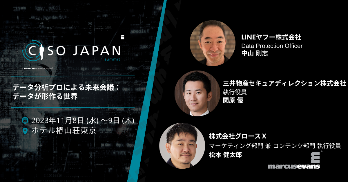 LINEヤフー株式会社の中山 剛志氏、三井物産セキュアディレクション株式会社の関原 優氏、株式会社グロースXの松本 健太郎氏のお三方をお迎えして、データ分析のプロ達によるデータプロテクションについてお話しいただきます。