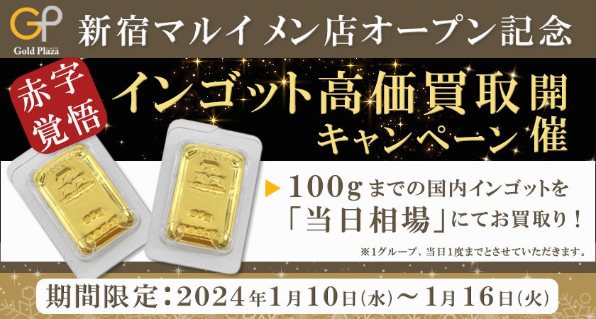 【ゴールドプラザ】☆新宿店オープン記念☆インゴット高価買取キャンペーン