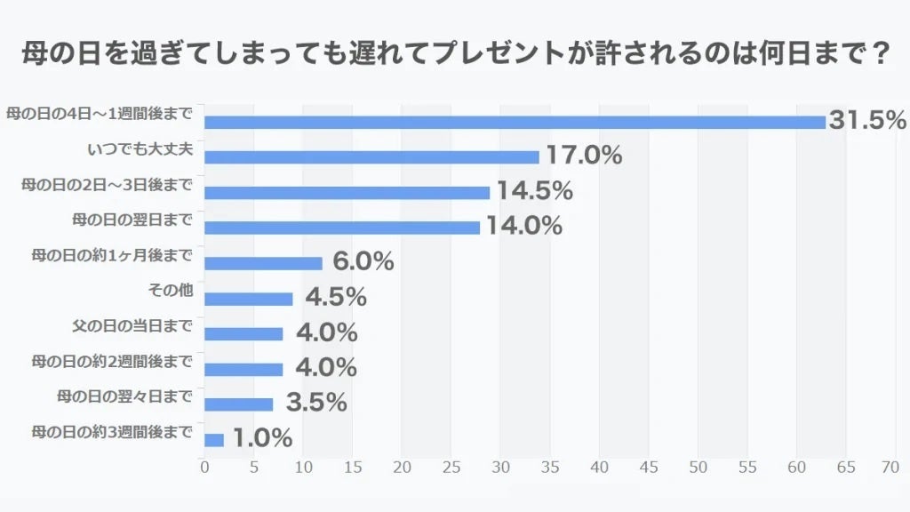 【アンケート調査】母の日を過ぎてしまっても、遅れてプレゼントが許されるのは何日まで?