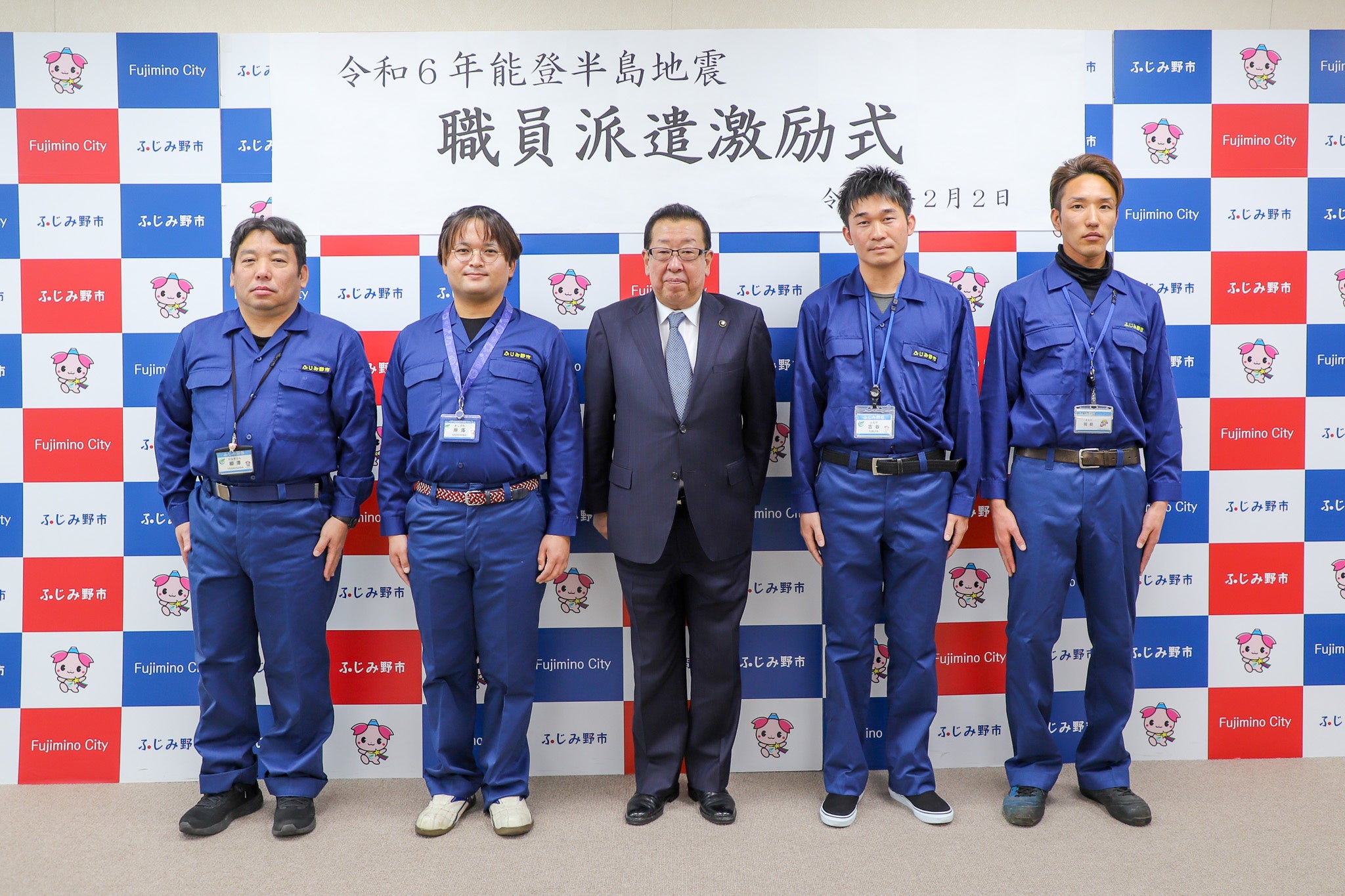 令和6年能登半島地震によって被災された自治体を支援するため、給水車と職員を派遣するにあたり激励式を開催しました。