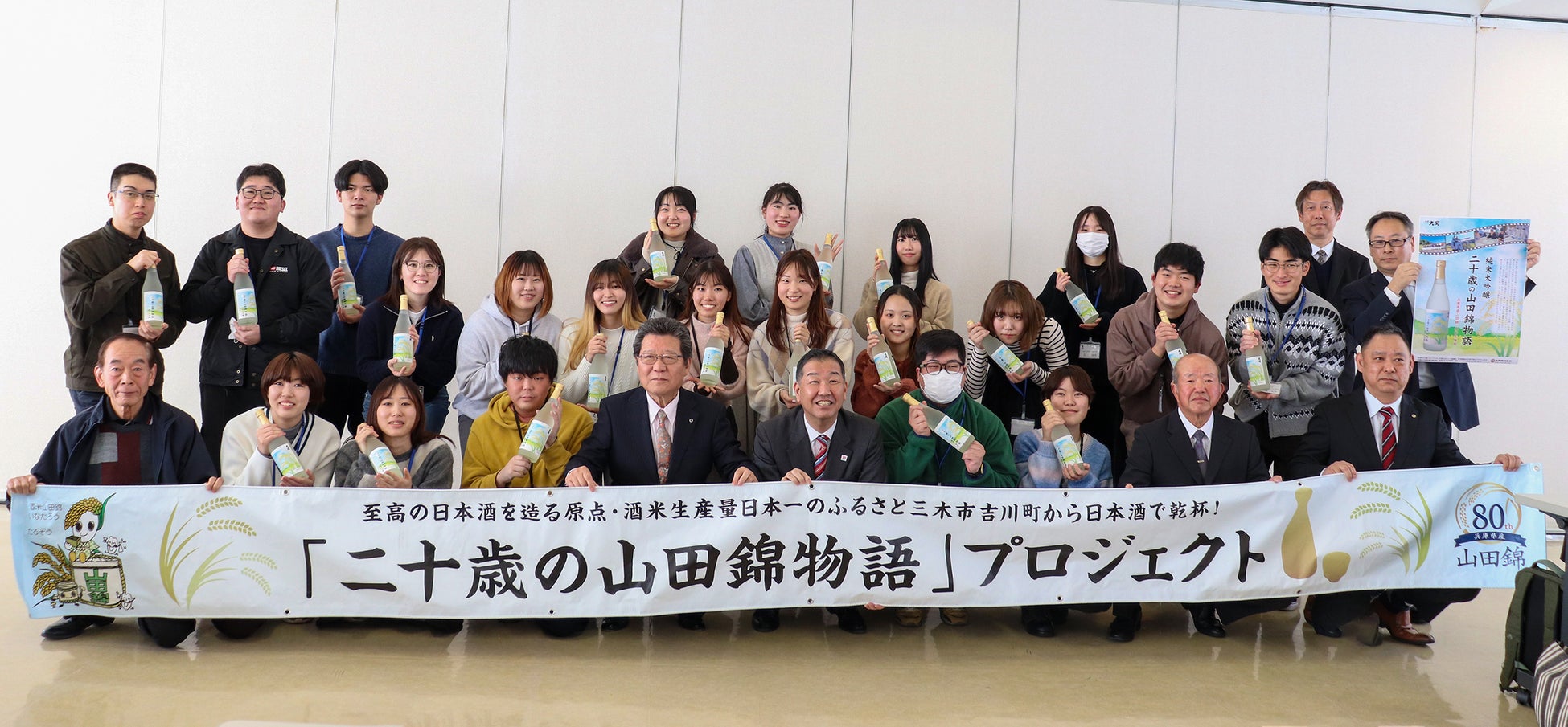 兵庫県下の大学生が米作りから酒造りまで関わった“二十歳の山田錦物語”プロジェクトの日本酒がお披露目!
