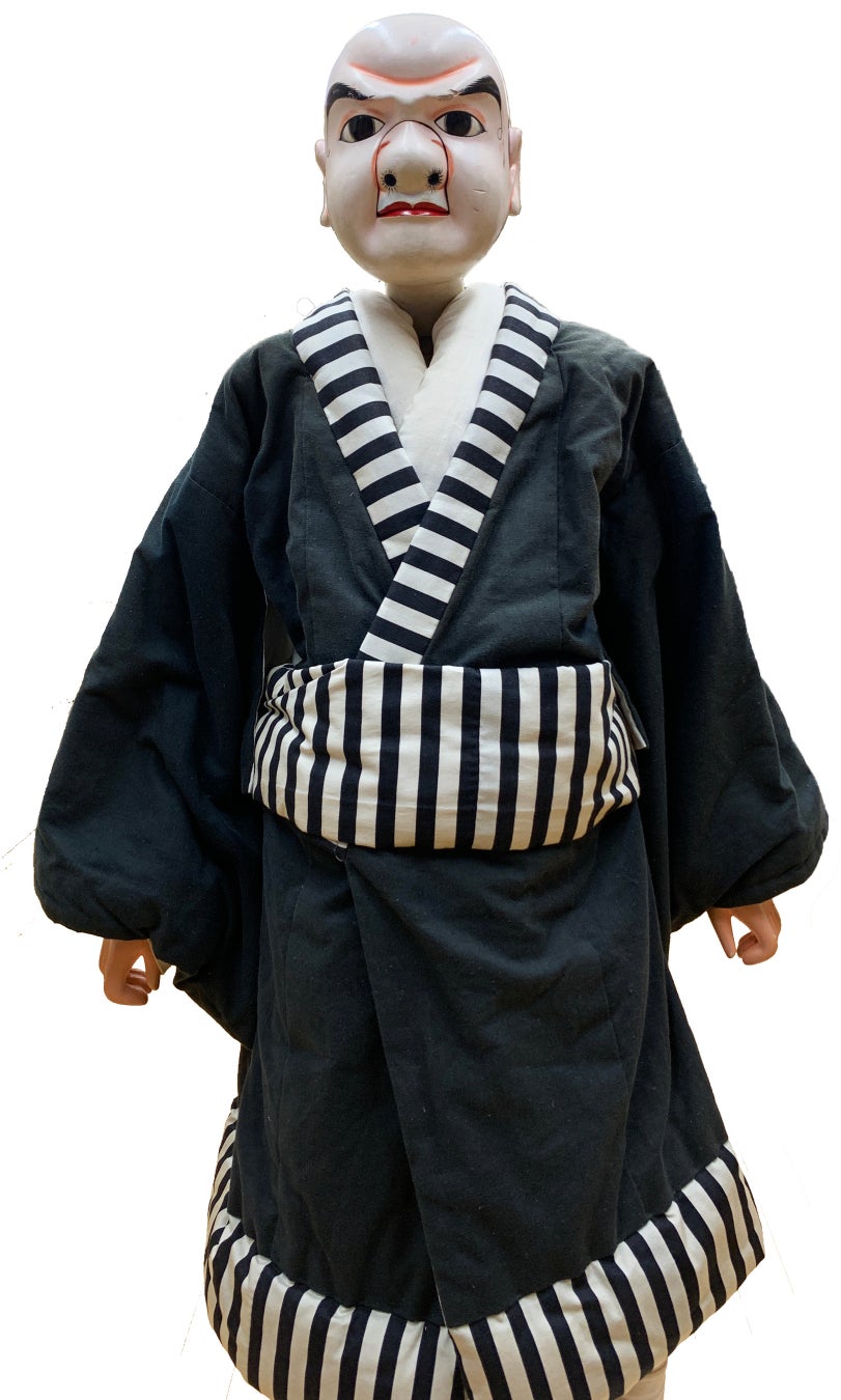 脇役のかしらは、決まった約束事がないので、人形師がそれぞれに工夫を凝らして自由に彫り上げられています。寸法は、主役を引き立たせるため、一回り小さめ。