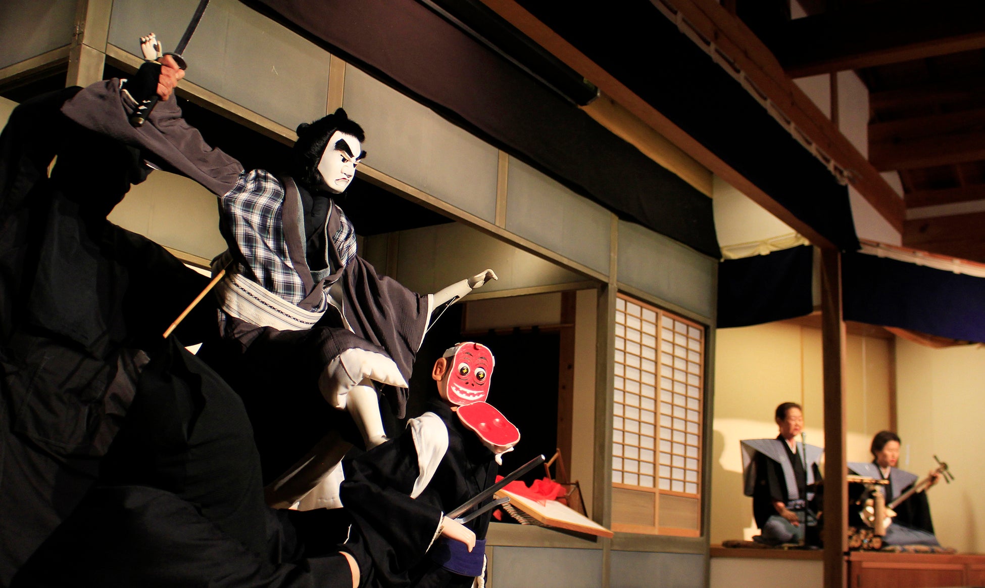 情感を込めて物語る太夫、五線譜には表せない多彩な音色で語りを支える義太夫三味線。そして世界に比類のない三人遣いで操られる人形。それぞれが織りなす表現の中に、私たち日本人の感性が色濃く息づく芸能を心ゆくまでお楽しみください。