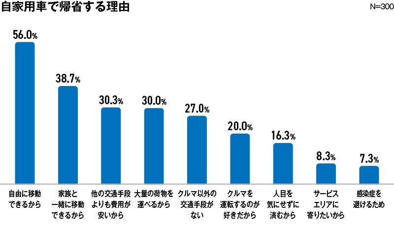 なぜ「積極的に自家用車での帰省を選択している」人が多いのでしょうか。自家用車での帰省を選択する人々にその理由を聞きました。