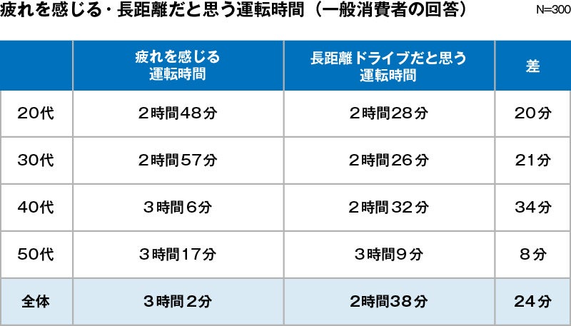 疲れを感じる運転時間、平均は「3時間2分」