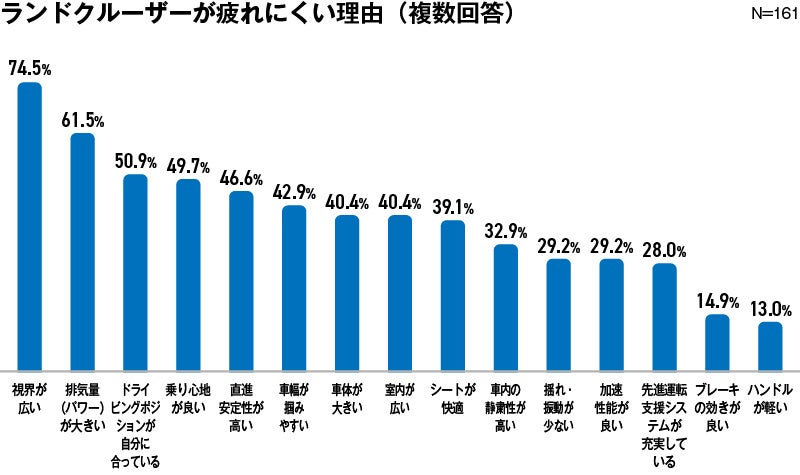 オーナーの7割以上が「ランクルは疲れにくい」と回答