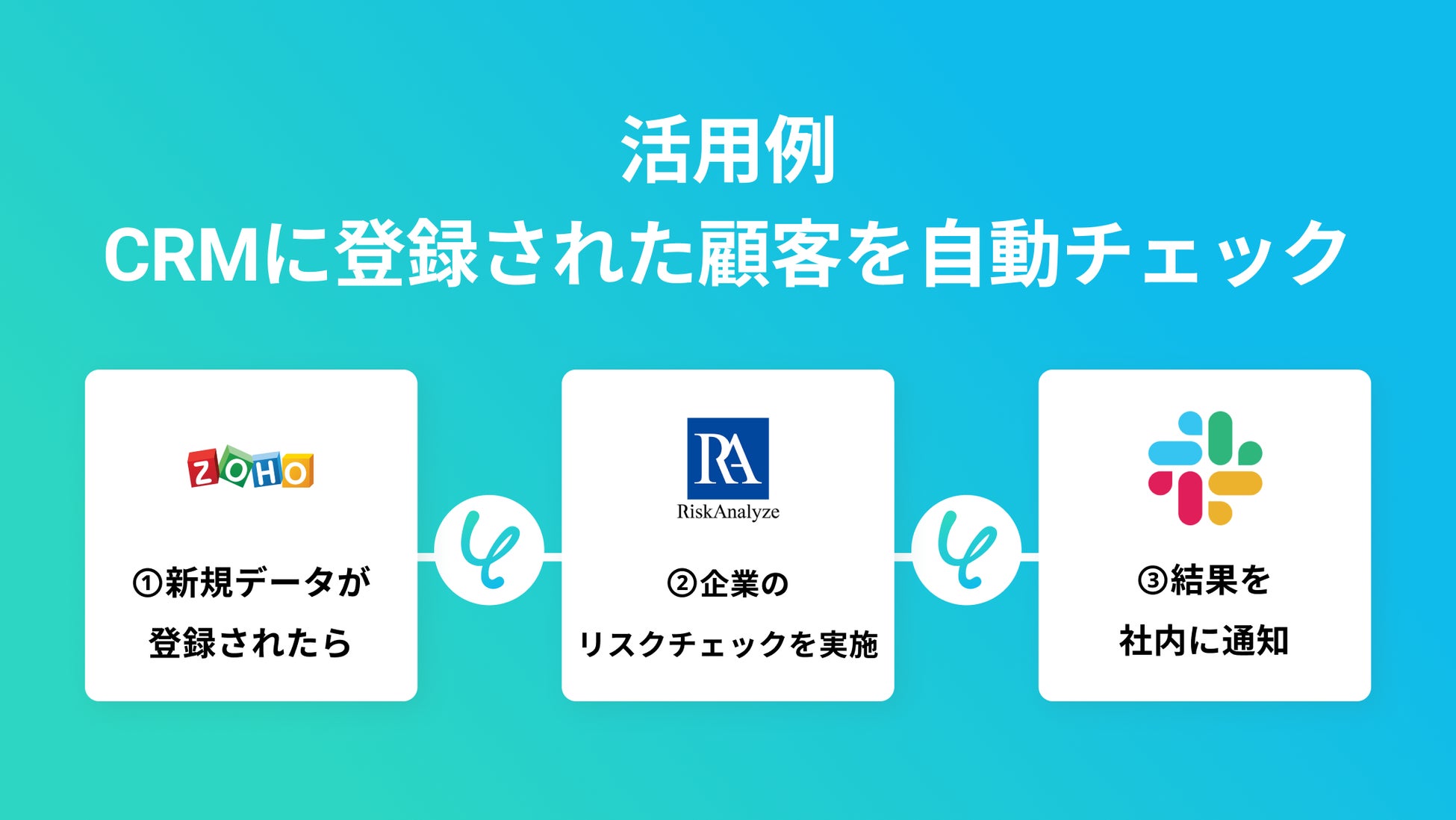 ・Zoho CRMなどの各種SFA/CRMなどで新規登録された顧客のリスク判定を自動で実施し、結果をSlackなどのチャットツールに通知。