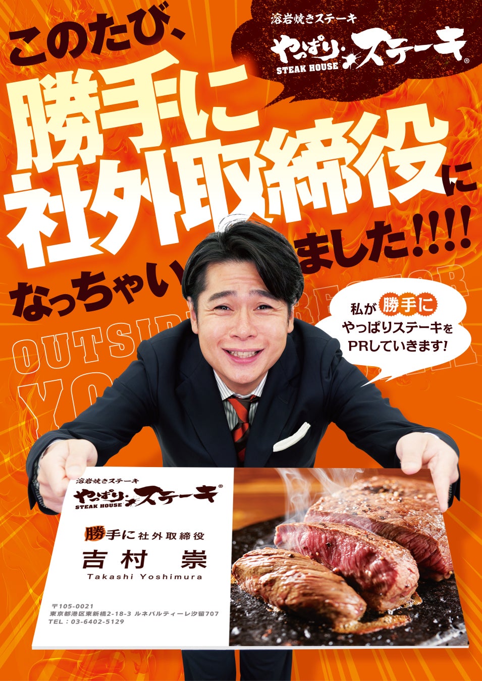 【沖縄×北海道】平成ノブシコブシ・吉村崇がやっぱりステーキの“勝手に社外取締役”に就任!新たな目線で商品開発・企画・広報まで全てを担う一大プロジェクトが始動!