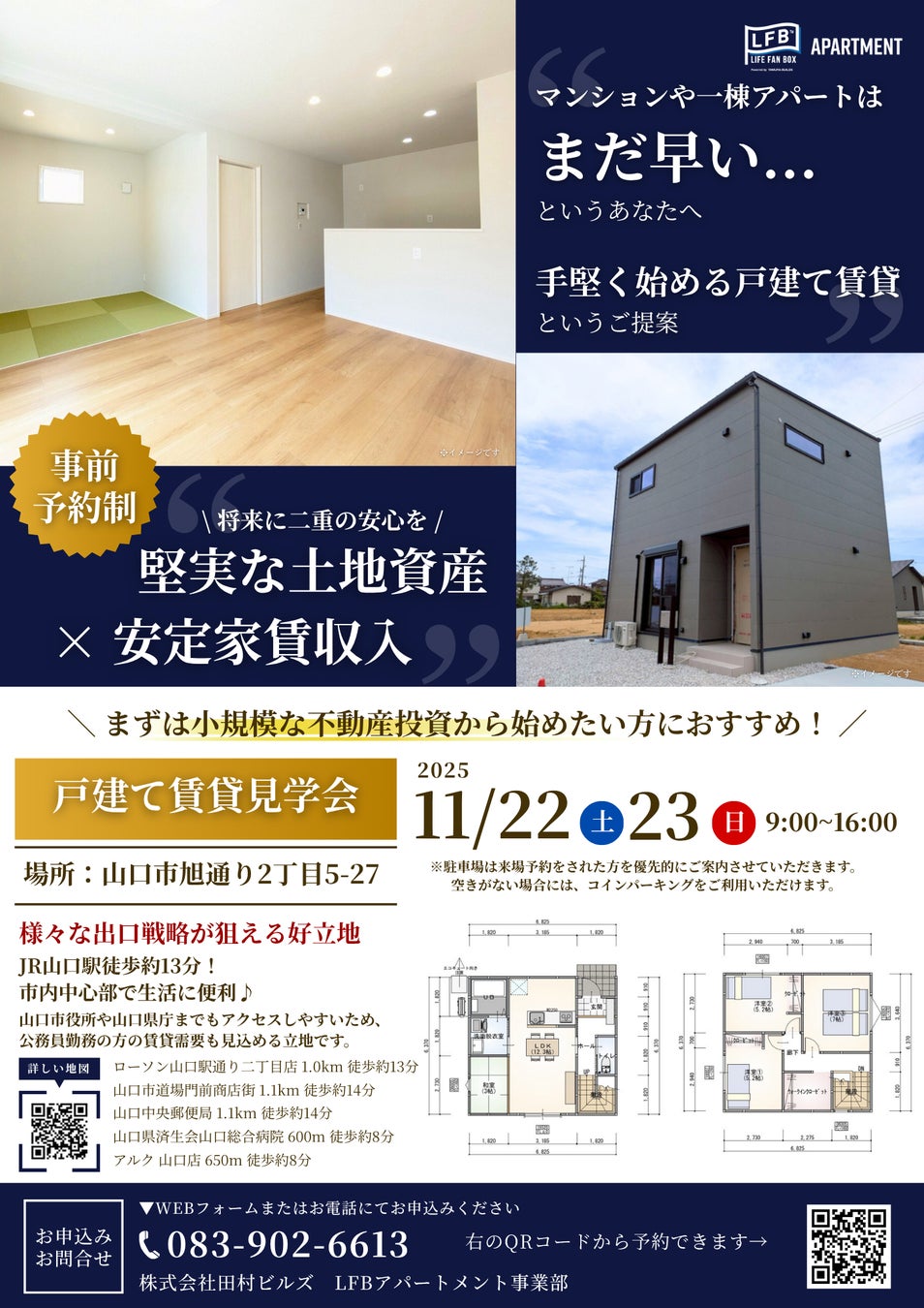 株式会社田村ビルズ(本社: 山口県山口市黒川 代表:河村英治)が提供するLFB APARTMENTが、初となる戸建賃貸の提供を開始したことをお知らせいたします。立地条件や地域特性に応じた柔軟な不動産活用を提案し、オーナーの資産運用ニーズに幅広く応えていきます。