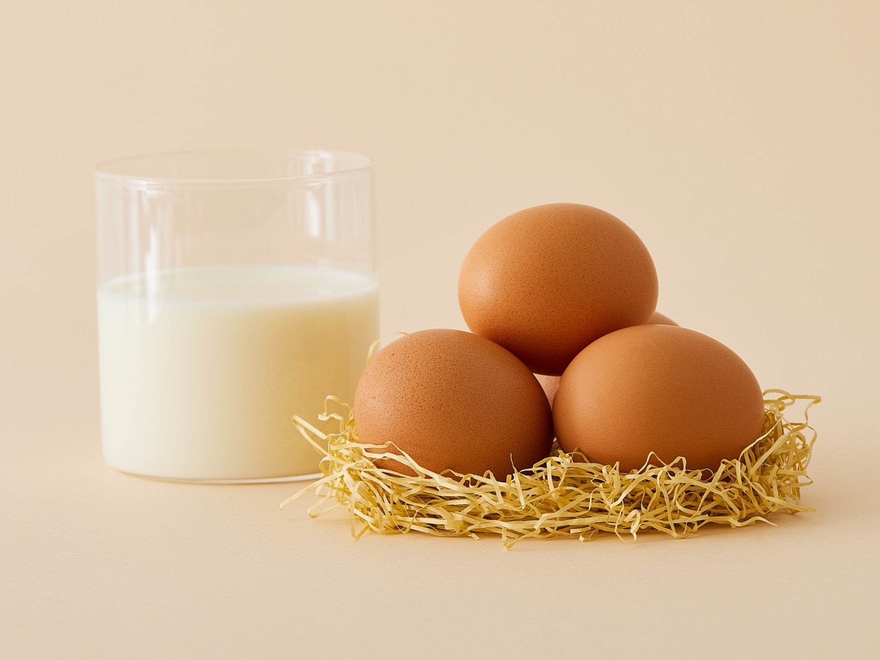 ③自社牧場で育てた放牧牛乳と平飼い卵を使用