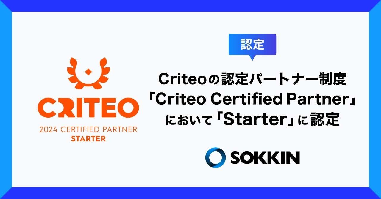 株式会社SOKKIN、Criteoの認定パートナー制度「Criteo Certified Partner」において「Starter」に認定