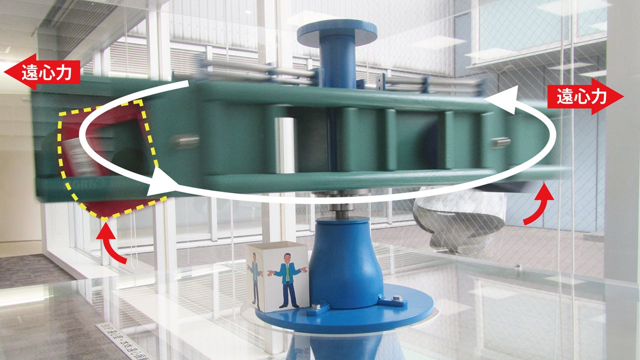 縮小模型に対して遠心力を作用させて、地震動や構造物に働く力を与え、実物と同等の挙動を再現できる実験装置のこと。大林組技術研究所には1999年から本装置を実装、運用しています。本装置は震度7クラスの巨大地震の再現が可能